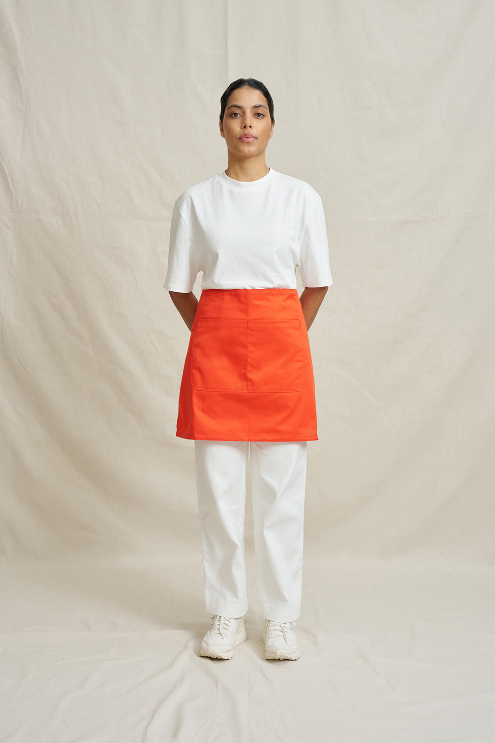 Made from a durable poly-cotton drill blend (65% polyester, 35% cotton), this short waist apron features a wrap-around design, front pocket, and tea towel loop. Its anti-wrinkle fabric stays crisp after frequent washes, making it ideal for hospitality, retail, or workshops.