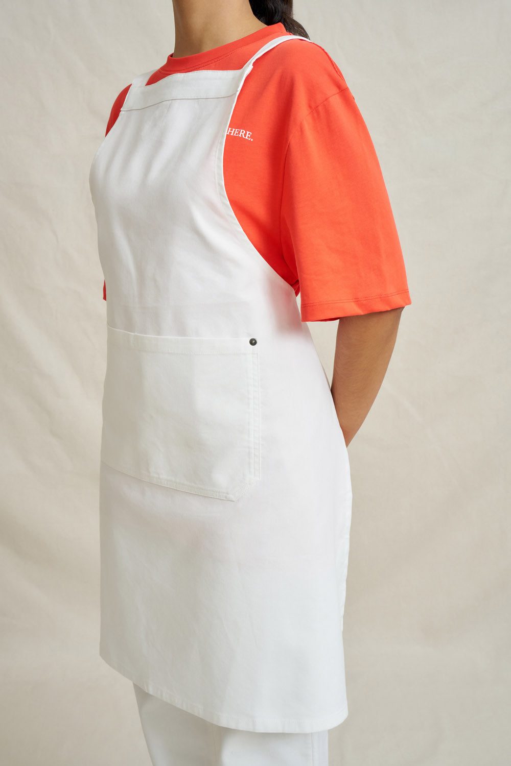 This premium apron, made from a durable poly-cotton blend (65% Cotton, 35% Polyester), offers a smooth finish and lasting shape, ideal for formal dining. It features a comfortable cross-back strap, gunmetal eyelets, reinforced stress points, a tea towel loop, and a large hip pocket for storage.