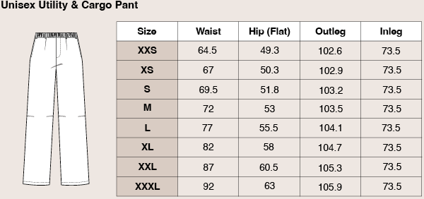 The Unisex Utility Pant, made from a soft, durable cotton-poly blend (54% cotton, 46% polyester), offers comfort and resilience. It features an elastic waistband with drawcord, faux fly, belt loops, pockets, pleats, and knee darts for enhanced fit and movement.